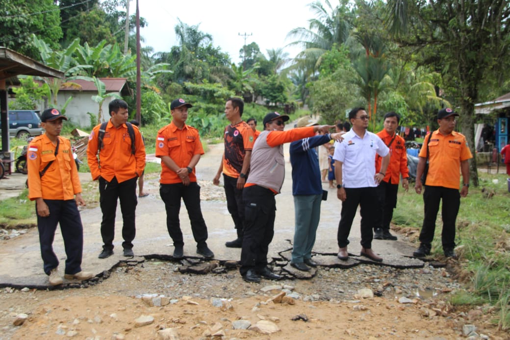 BPBD bersama TNI/Polri, pihak Kecamatan dan desa serta tim BWSK I saat meninjau dampak bencana banjir bandang di desa Kedakas