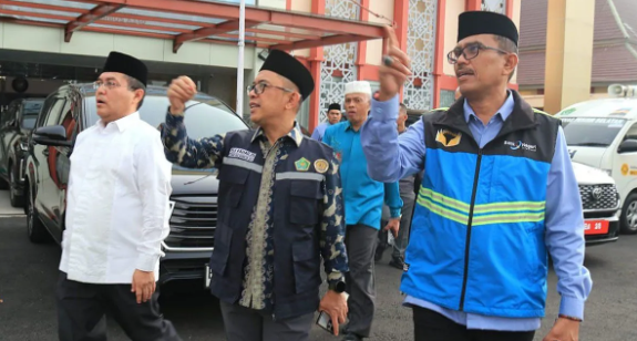 Direktur Pelayanan Haji Dalam Negeri BPH RI Puji Raharjo (tengah) melakukan kunjungan kerja ke Debarkasi Haji Padang, Sumatera Barat. (Dok. Ist)